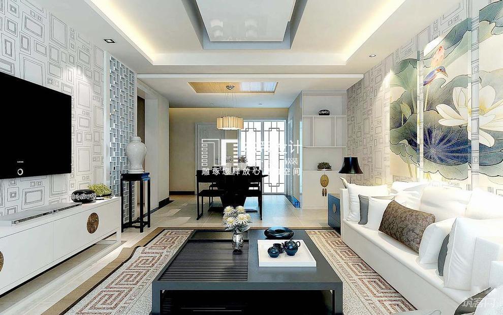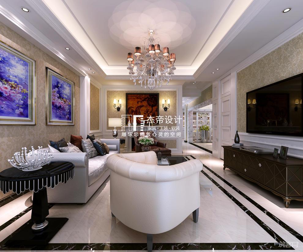 【客廳-別墅設(shè)計(jì)】沙發(fā)背景墻呈現(xiàn)彩繪的荷葉圖案,清新又雅致。獨(dú)出另類(lèi)的設(shè)計(jì),令別墅空間多了幾分鑒賞性的藝術(shù)色彩。